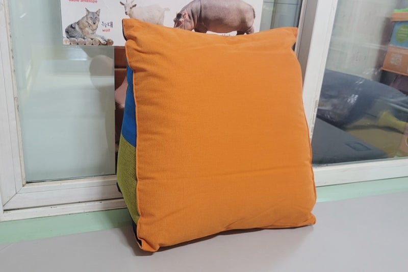 쿠션 원단, 면 100%, 촉감이 부드럽고 장시간 누워있어도 피부에 자극이 없는지 확인하세요.한국산