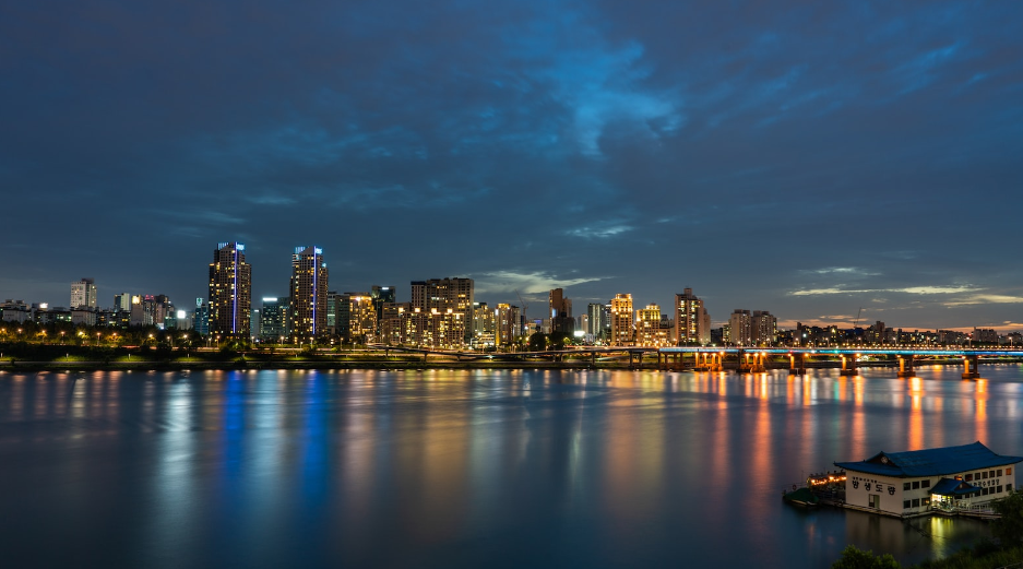 한강의 섬에 위치한 이 상업 지구는 인근에 많은 공원과 휴양지가 있어 보다 편안한 분위기를 가지고 있습니다.