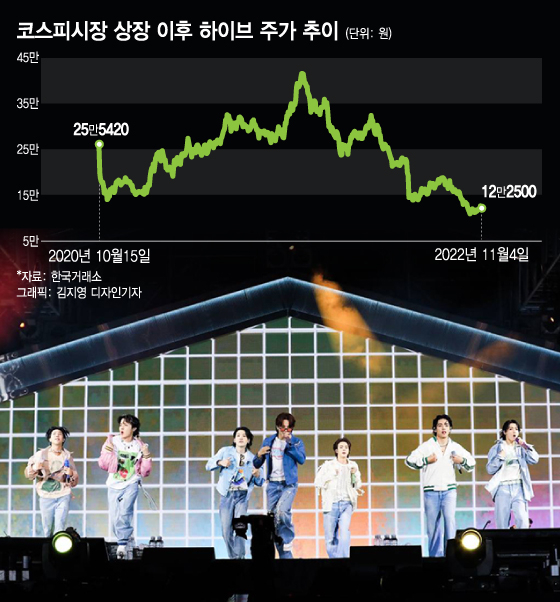 하이브(352820) 3분기 실적도 시장예상치 상회 2222 3Q 매출액 30.6% YoY, 영업이익 -7.6% YoY 3Q22 연결기준 매출액 4,455억원(YoY 30.6%), 영업이익 606억원(YoY -7.6%) )는 시장 예상(매출액 4037억원, 영업이익 570억원)을 상회했다. 방탄소년단, 세븐틴 등 주요 IP 아티스트들의 새 앨범 활동이 지속되는 가운데 오프라인 콘서트(월드투어) 활동 증가로 매출 성장세를 이어갔다. 다만 일부 일회성 비용(프로그램 제작비 등) 참여형) 3분기 주요 아티스트 IP 앨범 판매량은 세븐틴이 188만장, 뉴진이 58만장으로 총 374만장이었다. 네 번째 시즌에는 세븐틴의 새 앨범, 신인 데뷔(일본 현지화 그룹 _&TEAM)와 방탄소년단(진, RM)의 솔로 활동이 앨범 성과를 견인할 전망이다. 또한 투모로우바이투게더/세븐틴/ENHYPEN 등 월드투어(미국, 일본, 동남아 등) 활동도 이어갈 예정이며, 직접 참여 매출은 2,523억원(+53.7% yoy)에 달할 전망이다. (간접참여형) 월드투어 관련 콘텐츠 및 매출 호조로 매출 증가로 높은 실적 성장 달성. Weverse 2.0의 간접 참여 혜택에 대한 기여도는 중장기적으로 신규 서비스 확대에 따라 증가할 것으로 예상됩니다. IP 관련 콘텐츠(라이브 공연, 신규 게임 등)의 공급은 지속적으로 확대될 전망이며 내년 상반기부터는 이타카 홀딩스 산하 글로벌 아티스트들의 신규 IP 진입이 본격화될 전망이다. 다중 조정(45배→35배)으로 목표주가를 180,000원으로 하향한다. 신규 IP의 폭발적인 성장으로 포트폴리오 다변화가 빠르게 진행되고 있으며, 현재 보수적으로 실적에 반영되고 있는 신규 사업(게임/NFT 등)의 미래가치를 감안할 때 투자 매력이 높다.